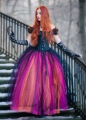 Decoration: Corset - Plastic boned, Lace up, Bowkot, Cap Sleeves also can be off the shoulder; Skirt - Elastic waist band, Multi-layered